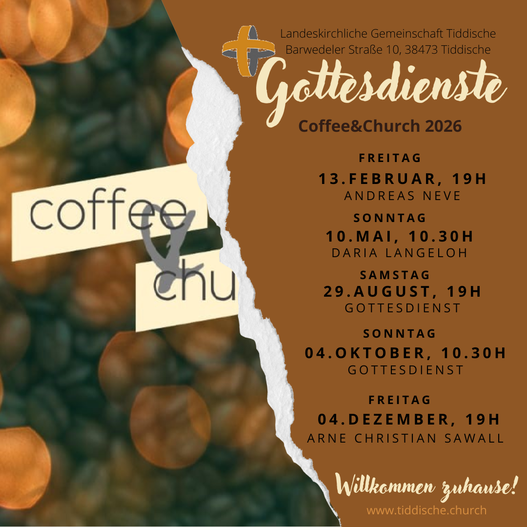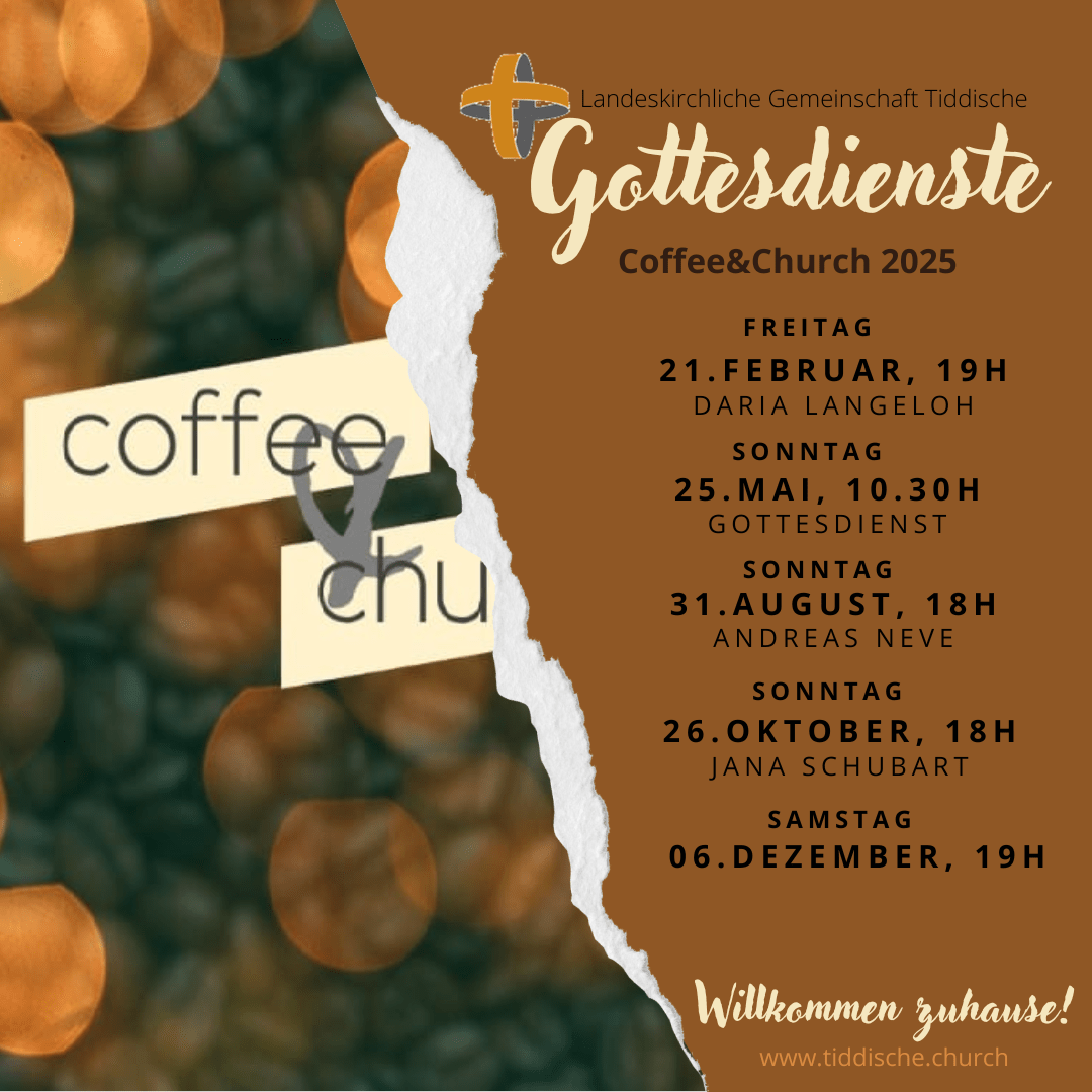 Jeweils 30 Minuten vor Gottesdienstbeginn ist die Coffeebar geöffnet, an der jeder verschiedene Getränke und Snacks, sowie Gemeinschaft genießen kann. Dazu sollte jeder seine